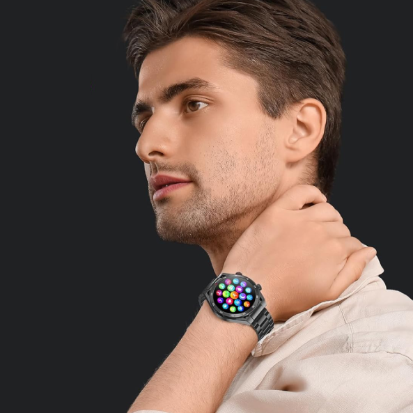 Profitez d’un équilibre parfait entre style et fonctionnalité avec notre Montre Intelligente AMOLED 1.43 pouces, conçue pour les hommes et les femmes actifs, que ce soit pour les affaires, le sport ou le quotidien. Dotée d’un écran AMOLED vibrant, cette montre étanche permet des appels Bluetooth, un suivi fitness, la surveillance de la santé et la lecture de musique, s’adaptant à tous les poignets pour un confort optimal.